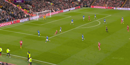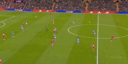首先,由于阿隆索在勒沃库森时期主打三后卫,所以进攻宽度天然可以由翼卫拉开,利物浦当然也会如此行事,只不过是由两侧的进攻球员来拉开宽度。